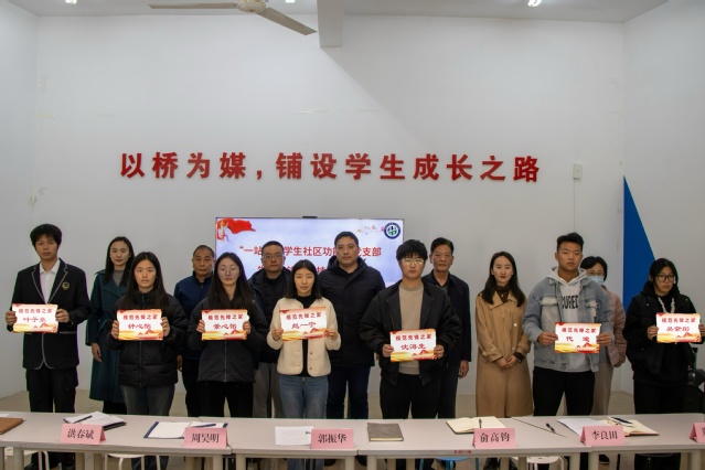 接着,党员学生代表侯峥、积极分子学生代表代迪发言,表示在今后的学习生活中要主动亮身份、作表率,带头营造整洁宜居的宿舍环境,积极参与志愿服务、文化建设等各类事务,以实际行动为“一站式”学生社区建设添砖加瓦。