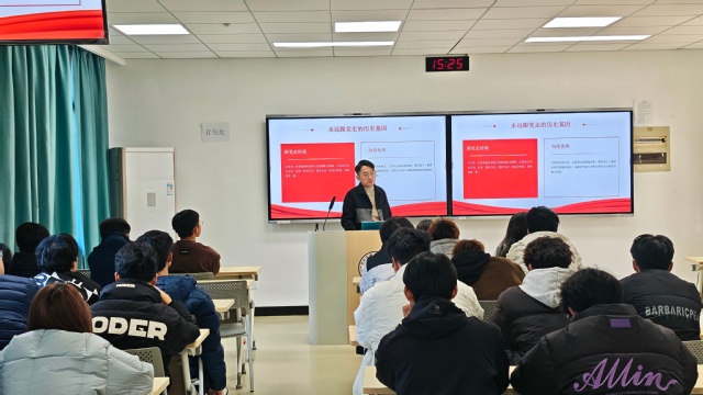 唐伟哲老师以“百年青春路:共青团与时代同行”为主线,系统梳理了中国共青团从诞生到发展的光辉历程,结合历史事件与青年典型,阐述了共青团在革命、建设、改革各个时期发挥的先锋作用。他勉励同学们从团史中汲取精神力量,将个人成长融入国家发展,争做有理想、敢担当、能吃苦、肯奋斗的新时代青年。活动现场气氛热烈,同学们认真聆听、积极互动。
