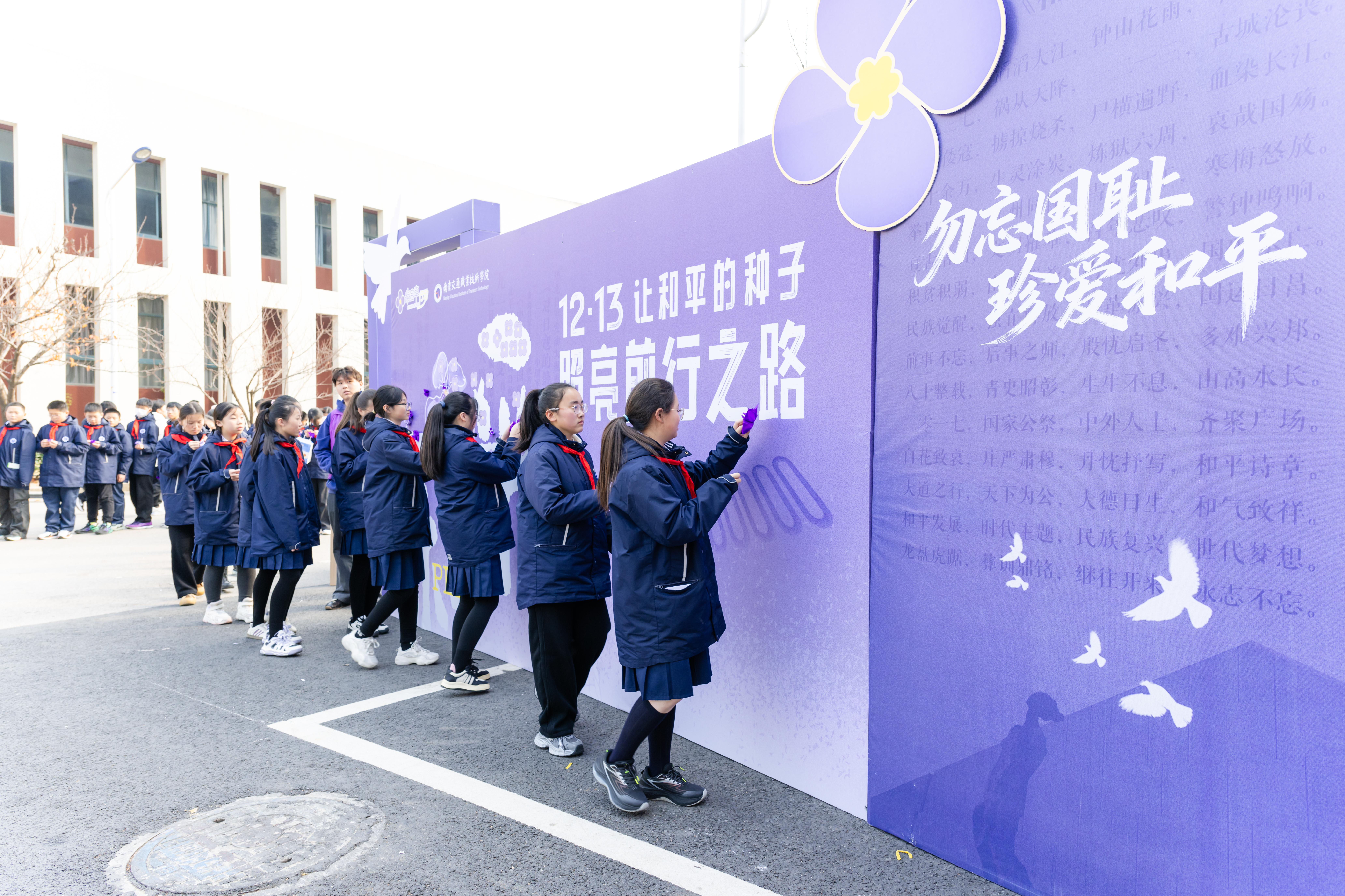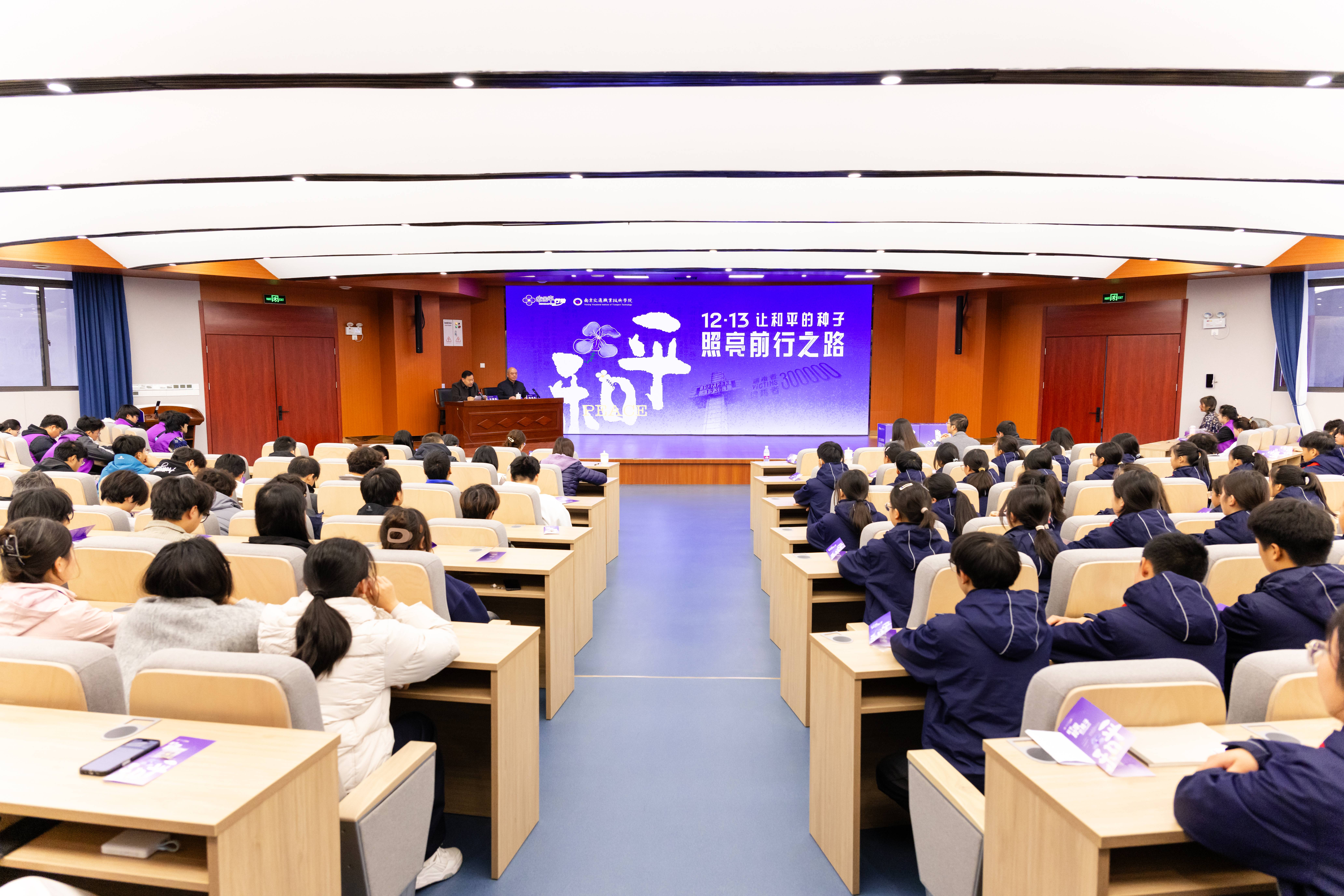 “龙盘虎踞,彝训鼎铭,继往开来,永志不忘。”12月10日下午,在学院明德楼报告厅内,来自学院以及江宁高新区中学的师生代表们,共同庄严宣读“和平宣言”,拉开了“紫金草行动”主题思政课的序幕。