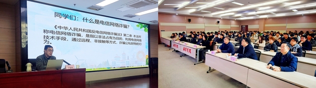 鼓楼区人民法院原副院长、高级法官,南京市及鼓楼区法治报告团成员,鼓楼区人民法院关工委副主任严建华围绕大学生防范电信网络诈骗展开宣讲。他运用南京市鼓楼区人民法院审理的刷单返利类诈骗、虚假网络投资理财类诈骗、虚假网络贷款类诈骗等典型案例,详细讲解了大学生常见的诈骗犯罪类型、预防违法犯罪的方法,以及违法犯罪后需承担的刑事责任。此次宣讲采用“典型案例 + 法条解读”的方式,紧密结合青少年学生的心理特点和网络犯罪案件的司法实践,有效提高了大学生对常见网络诈骗犯罪类型的识别能力,增强了自我保护和防范能力,助力我校大学生进一步树立“知法、守法、用法”的意识。