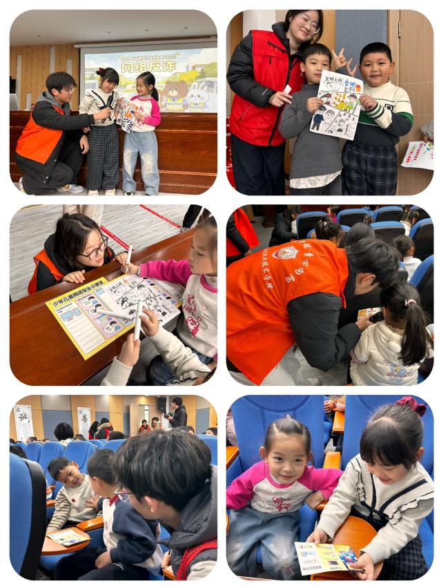 “键上护航,童心向阳”主题宣讲与海报展示将活动推向高潮。志愿者们以故事形式讲述网络安全知识,并展示了精心设计的系列主题海报。海报巧妙融合建筑工程元素,将“防火墙”比作安全大厦的基石,形象阐释了网络安全防护理念。孩子们在欢声笑语中增强了反诈防骗意识。