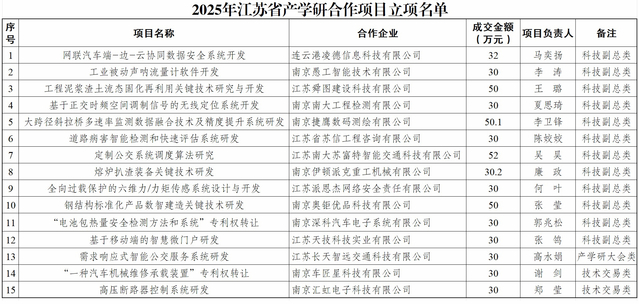 近日,省科技厅发布了“关于2025年江苏省产学研合作项目立项的通知”(苏科区成发〔2026〕9号),学院15个项目获2025年江苏省产学研合作项目立项,数量名列全省高职院校前列。