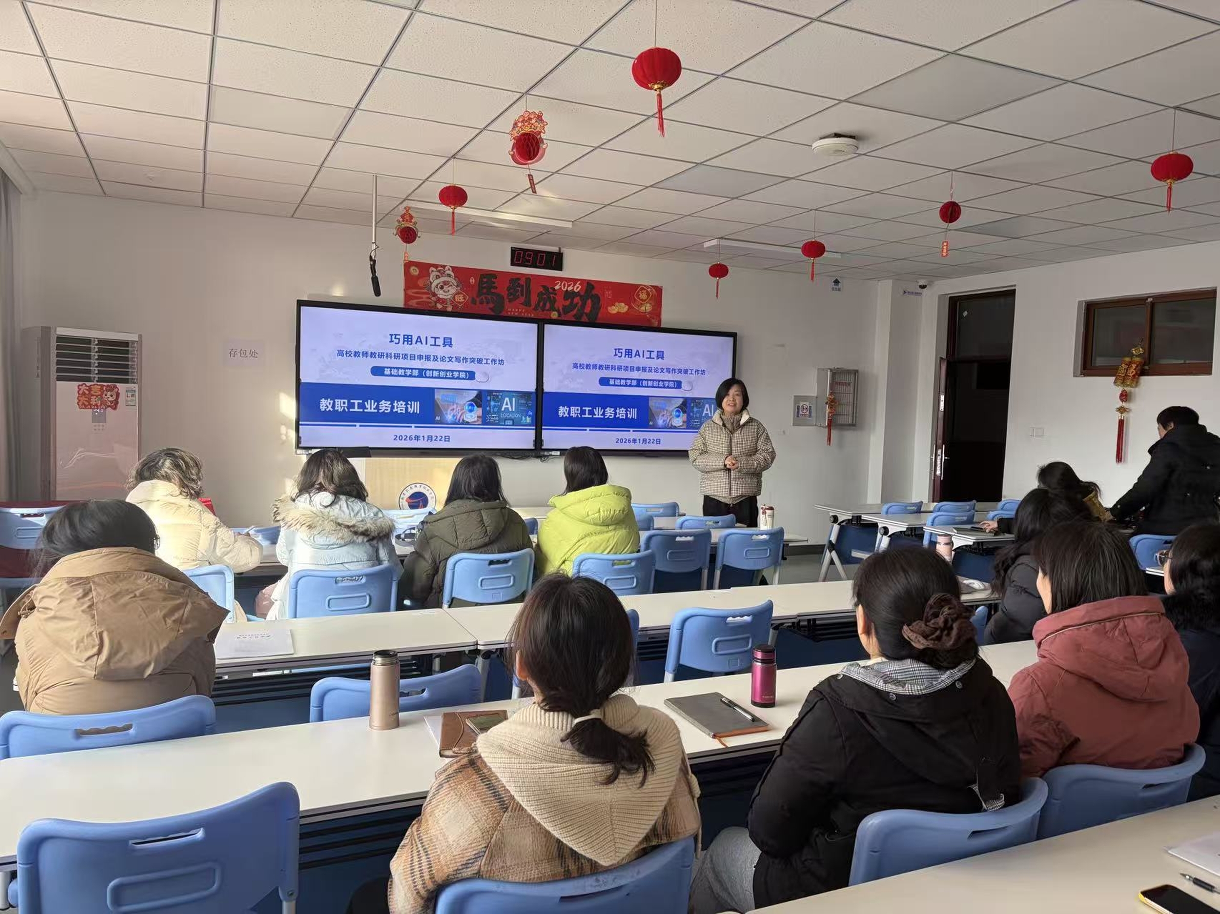 本次寒假培训内容务实,既有对教学基本功的锤炼与规范指导,也有对教育创新与前沿技术的探索引领。为期两天的集中学习与交流,既帮助部门教职工更新了知识储备、明晰了规范要求,更在互动中凝聚了发展共识,激发了内生动力。部门将持续完善教师发展支持体系,助力全体教职工以更饱满的热情、更扎实的功底、更开阔的视野,共同推进公共基础课程高质量建设与发展。