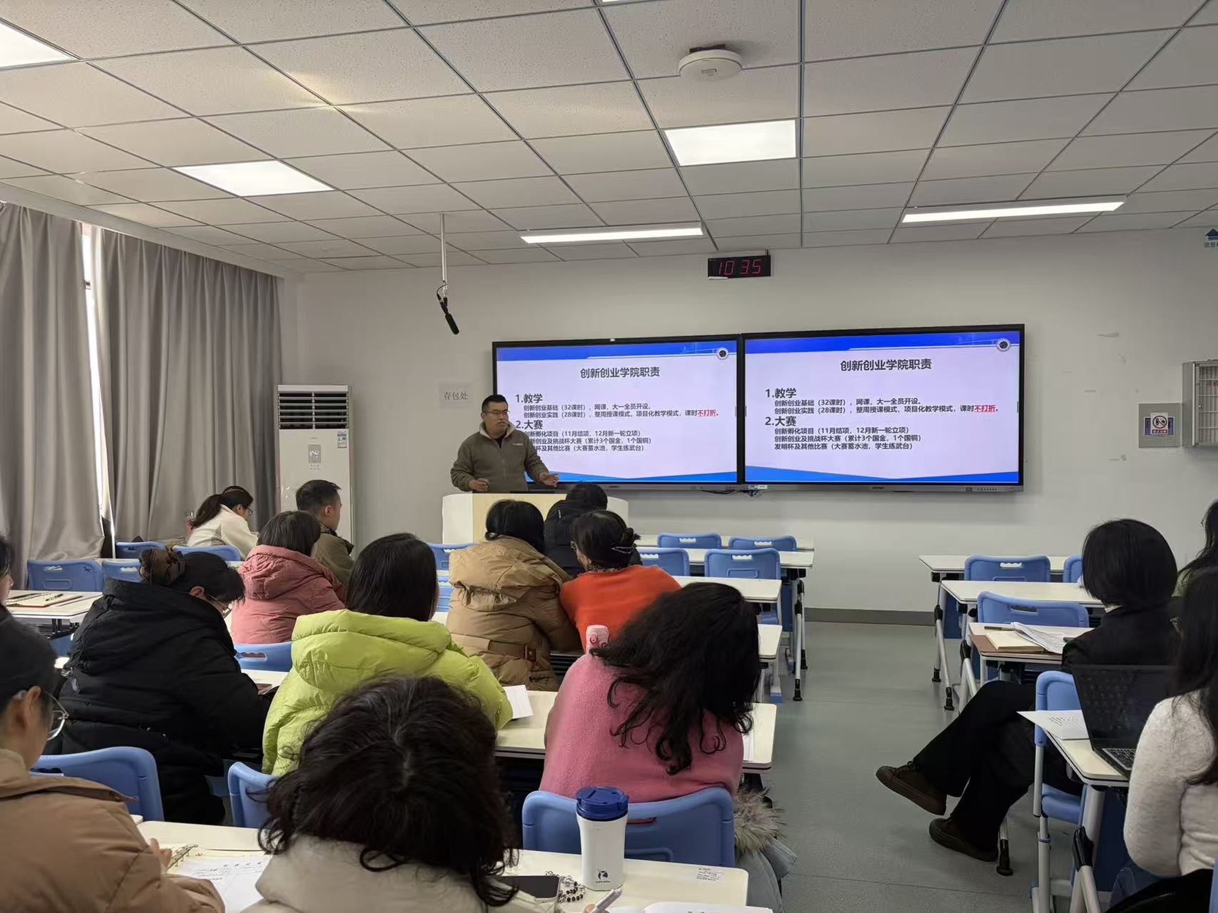 为全面提升教职工专业素养与业务能力,夯实新学期工作基础,基础教学部(创新创业学院)于1月21日至1月22日组织开展了寒假教职工业务培训。本次培训围绕教学示范与评议、创新创业教育两大主题,通过“示范、评课、解读、研习”相结合的多元形式,既是对本学期教学科研工作的总结回顾,更为新学期教学科研工作的高质量开展打基础。