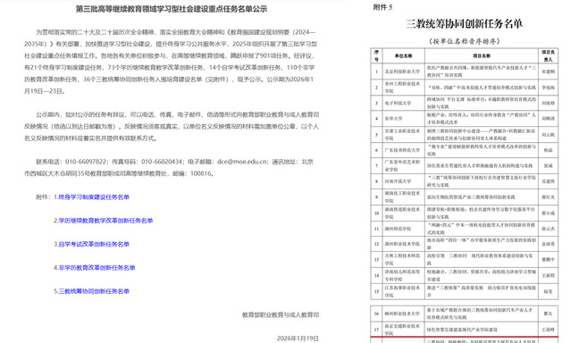 经过评选,我院申报的《绿色智慧交通建造现代产业学院建设》项目,成功跻身“三教统筹协同创新任务”培育建设名单。据悉,该重点任务在全国范围内仅择优遴选36项,其中江苏省仅有4个项目成功入选。我院项目能够脱颖而出,充分彰显了学院在对接路桥与港航行业转型需求、深化产教融合实践、推进继续教育改革创新等方面的坚实基础与突出潜力,也体现了学院在绿色智慧交通建造领域的专业优势与办学特色。