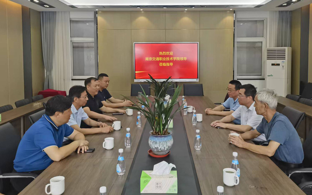在邗江交通工程建设有限公司,董事长丁寿文校友向母校领导介绍了企业建设发展情况,并共同就交通产业发展前景、交通工程相关专业人才需求、拓展产教融合新平台新途径进行了讨论交流。