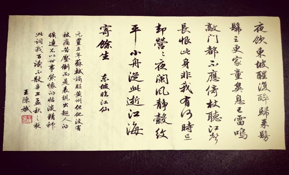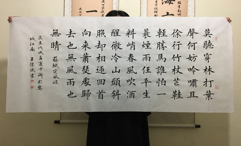 至于不干秘书本行,反倒成了小有名气的书法家,也是命该如此:老天爷赏饭吃,本该顺应天命。王陈斌自幼受到家庭熏陶,在其父影响下练习书法,初中时就小有所成,得到老师同学们的推崇。进入大学后,凡是有书法比赛、出宣传海报,王陈斌都是不二人选。大学毕业后,也在地产公司做过房产经纪,无奈总不称心。一番痛定思痛,做出人生中的重大决定:回归书画领域,那是自小就耳濡墨染,再熟悉不过的东西啊!从此王陈斌用毛笔谱写了人生新的华章。他开办了“青葵书斋”书画工作室,加入了浙江金华书法家协会。深耕网络书法培训,在腾讯课堂开讲“王老师讲楷书一周一字”获得万千网友的追捧,火遍了书法界。在知乎上,他是有名的社科人文领域答主,其书法论意见中肯、颇有见地,例如回答能否自学书法,他说“书法有法,法不轻传。欧阳询有三十六法,黄自元有九十二法,书法的法度,前辈不教,自学你能领悟多少?有些老者写了一辈子的毛笔字,但书法却还未入门,还不如一些学习一两年的少年,浪费时间精力,到头却是一场空。”这些关于研习书法的洞见,出自肺腑,启人深思。
