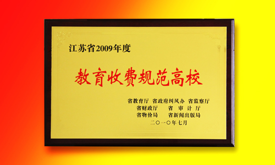 1月28日,在江苏省教育系统党风廉政工作会议上,学院荣获江苏省教育厅、江苏省政府纠风办、江苏省监察厅、江苏省财政厅、江苏省审计厅、江苏省物价局、江苏省新闻出版局等七部门联合授予的“江苏省2009年度教育收费规范高校”称号(苏教监【2010】5号文件)。全省共有15所高校被表彰为2009年度教育收费规范高校。