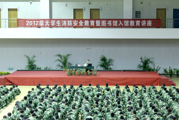 9月18日晚,2012级全体新生在行健馆聆听了消防安全知识讲座。东山消防中队王飞指导员结合自己多年来的消防安全工作经验,围绕校园防火、安全用电、火灾逃生、应急救援等方面内容作了精彩讲解,使新生在入校第一时间为今后的平安学习和生活中储备了消防安全知识和自救互救能力。
