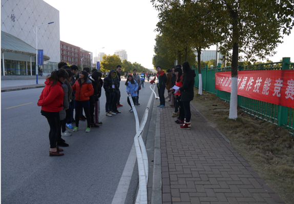 比赛前,学校保卫处也组织了20余名学生宿舍管理人员进行了灭火演练。