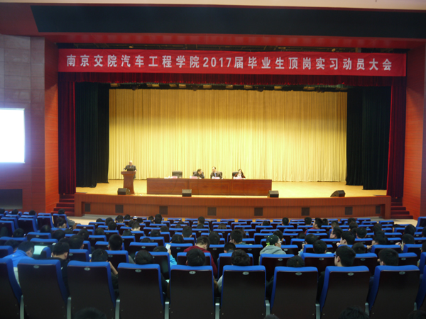11月1日下午,汽车工程学院在图书馆报告厅组织召开2017届毕业生顶岗实习动员大会。院长文爱民、党总支书记赵勇、副院长陈林山、副书记王黛碧出席大会,全体2017届学生、各班班主任和辅导员参加大会。大会由党总支副书记王黛碧主持。