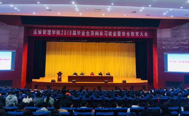 为进一步完善毕业生顶岗实习和就业工作,引导学生做好顶岗实习前的心理准备,2018年11月21日上午,运输管理学院召开2019届毕业生顶岗实习就业暨安全教育大会。运输管理学院院长吕亚君、党总支书记王艳梅、校保卫处副处长周家明、运输管理学院副院长林榕、毕业班班主任、全体辅导员以及参加顶岗实习的644名学生参加。会议由院党总支副书记葛明亮主持。