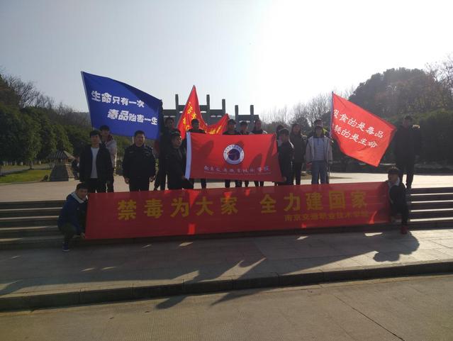 为进一步提升大学生的自我安全防范意识,培养青年学生对毒品的辨识和拒绝能力,2018年12月18日下午江宁区科学园派出所在方山风景区组织开展禁毒宣传活动,我院保卫处选派20名校园纠察队学生参加本次活动, 参加本次宣传活动的还有南京医科大学、江苏经贸职业技术学院。