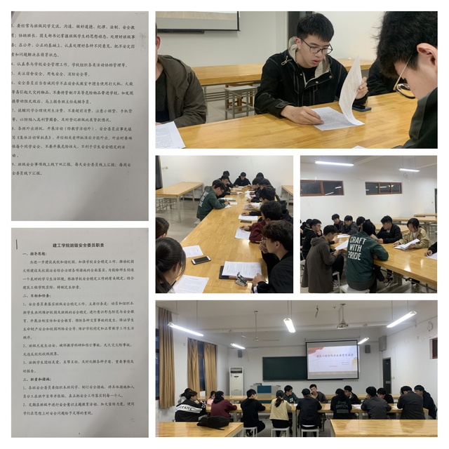 为进一步加强建筑工程学院学生安全管理工作,进一步完善与解决学生管理中存在的安全问题,建筑工程学院于4月25日在广宇楼414开展安全委员工作交流会,全体在校班级安全委员参加,会议由学工办王珣老师主持。