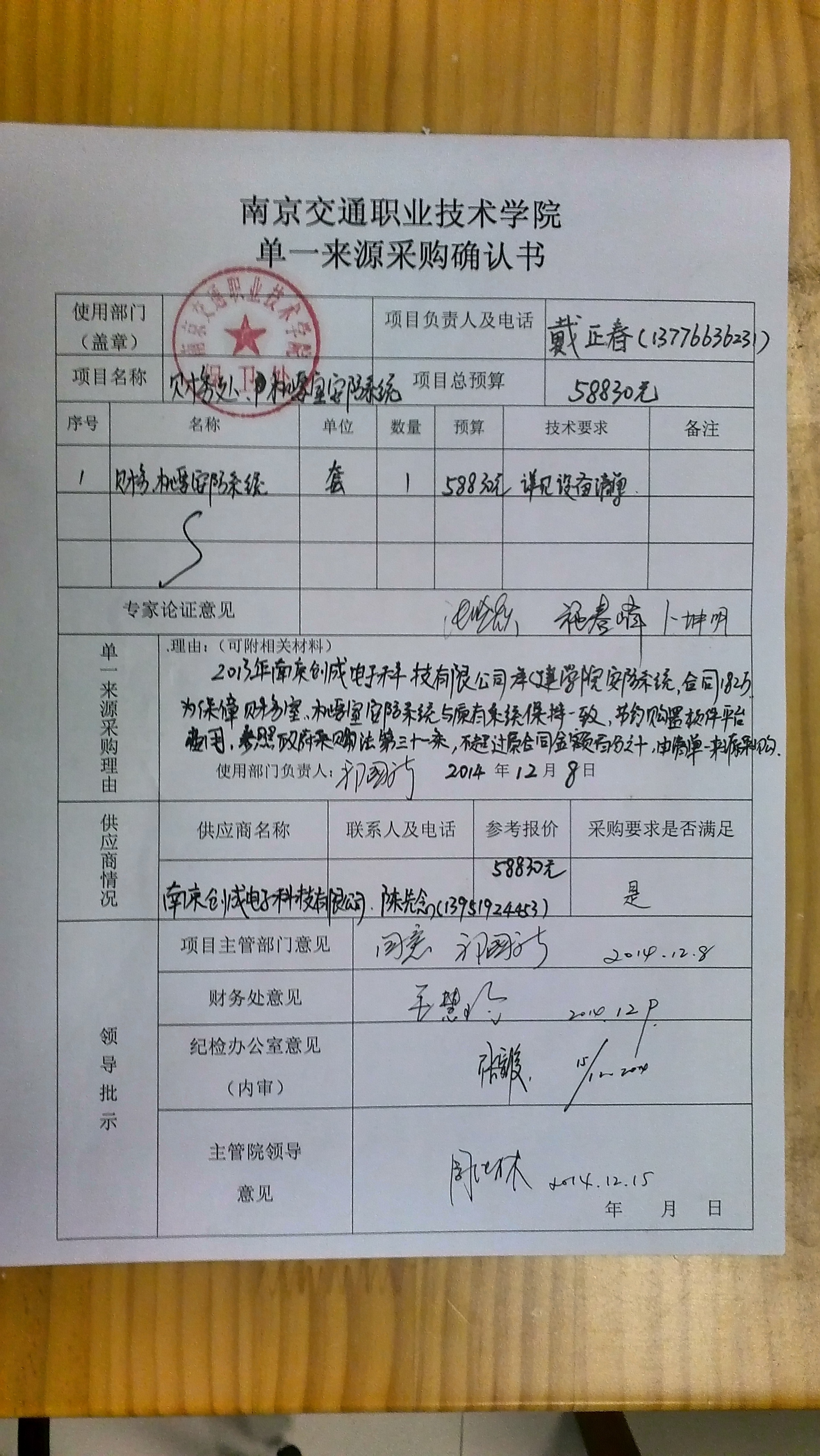 我部门受学院保卫处的委托,拟对该部门委托的采购编号为JY2015007号财务室、机要室监控报警系统项目实施院级采购。本部门根据采购人的实际申报情况,拟对该项目采用单一来源采购方式。