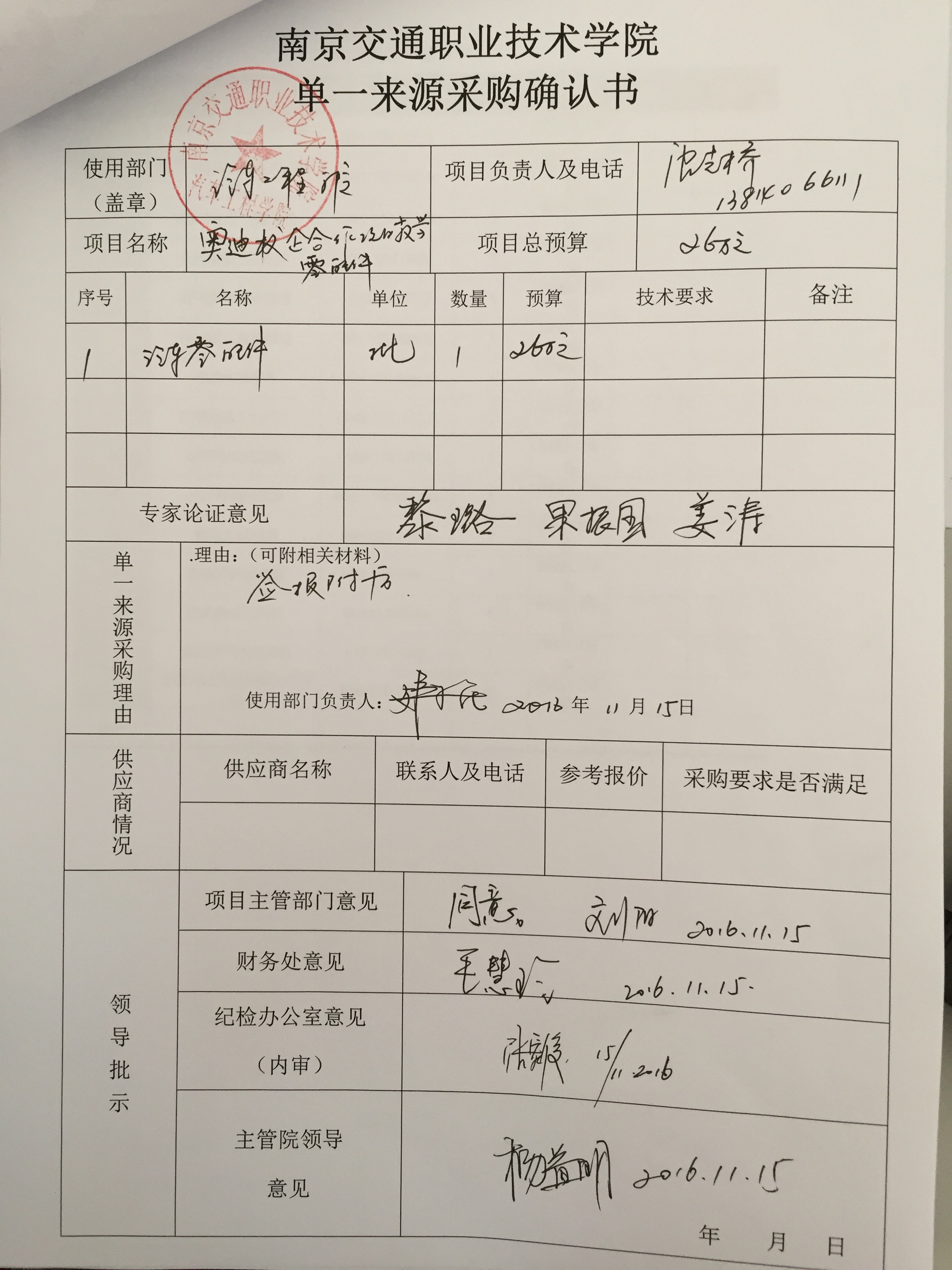 南京交通职业技术学院采购网2016年12月7日——2016年12月19日
