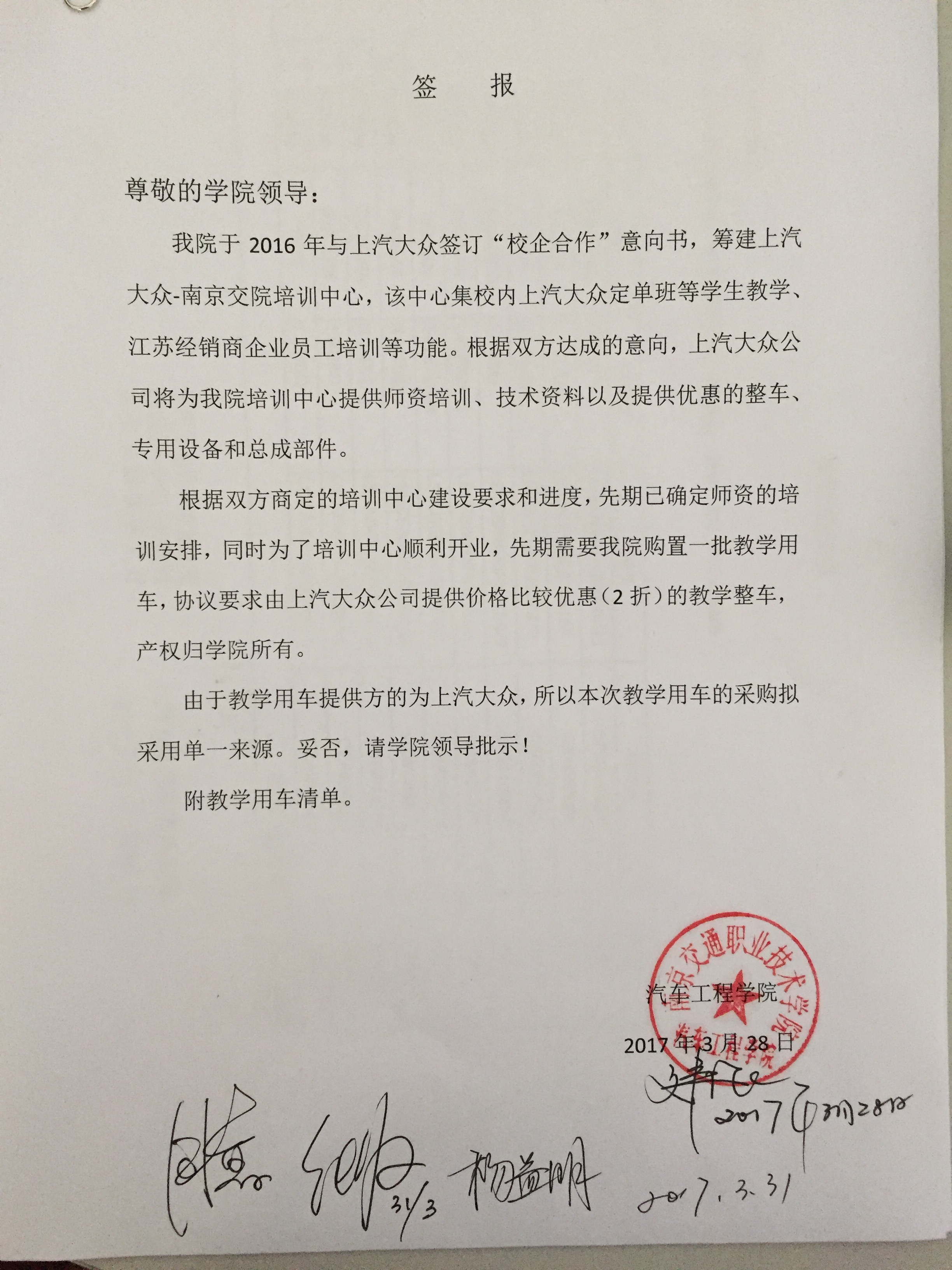 部门受汽车工程学院的委托,拟对该部门委托的采购编号为JY2017044的上汽大众培训中心教学车辆项目实施单一来源采购。