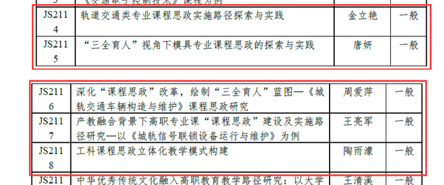支部党员教师深耕职业教育,潜心研究教学改革,获国家级教学成果二等奖 1 人,江苏省“五一创新能手”1 人,江苏省“青年岗位能手”1 人,江苏省“巾帼建功标兵”1 人,江苏省交通厅优秀教育工作者 1 人,江苏省“青蓝工程”优秀骨干教师1人,江苏省交通厅教学名师 1 人,江苏省高校微课比赛一、二、三等奖总计 15 人次,江苏省职业院校教学大赛一等奖 4 人,校级教学成果奖二等奖 2 人次,三等奖 4 人次,学院教学质量奖 21 人次。近三年在省级以上刊物第一作者公开发表论文 40 余篇;主编国家级规划教材 4 本和校本教材 2 本,参编教材 10 本,负责各级各类教科研项目总计 28 项,发明实用新型专利 16 项。