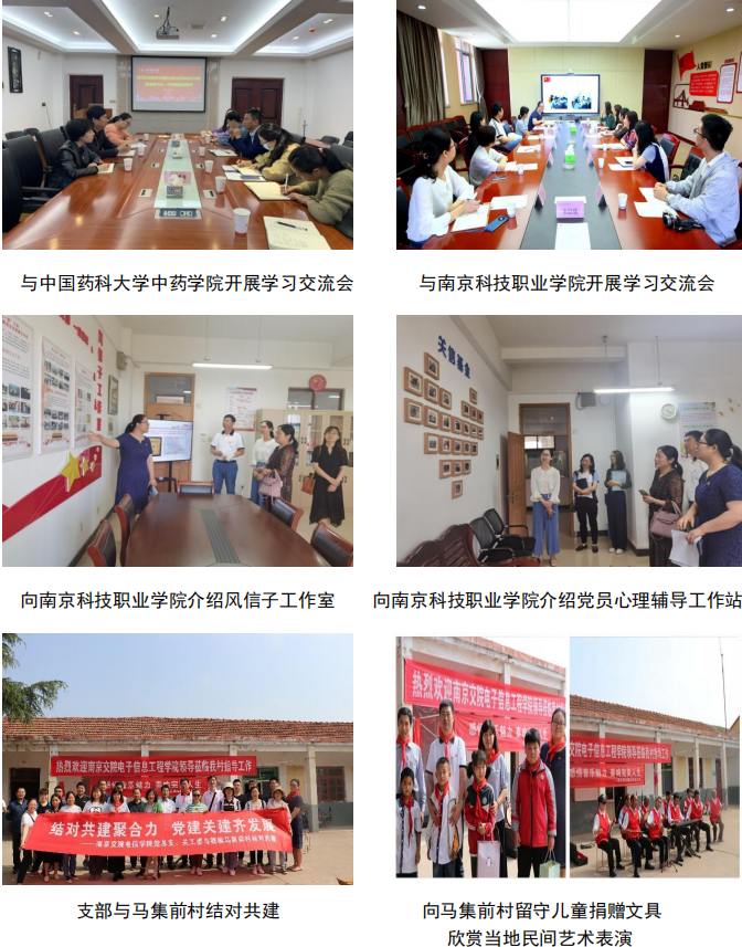 党支部与中国药科大学中药学院、南京科技职业学院开展交流基 础党支部建设经验,共同提高样板支部的建设水平。党支部组织前往红色教育基地开展实践学习。