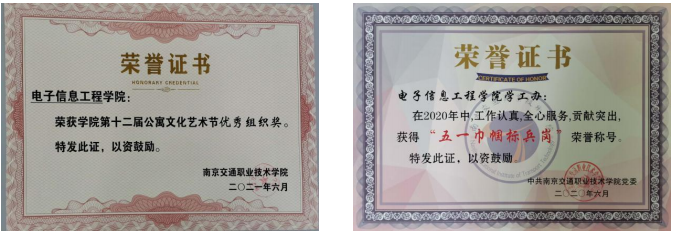 党建工作效果显著,党支部的“风信子工作室”党建品牌项目被 江苏省交通运输厅评为“优秀基层党建品牌” ,支部所辖学工办被评为江苏省“巾帼文明岗” ,支部与支部党员均获得各级各类表彰,真正起到了先锋模范作用。