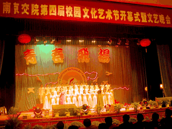 百花盛开的五月,到处姹紫嫣红;校园内繁花似锦,一片欣欣向荣。我院第四届校园文化艺术节开幕式暨“青春飞扬”文艺晚会于5月15日晚在学院大礼堂隆重举行。出席开幕式并观看演出的嘉宾有省交通海员工会主任潘继光、省交通厅政治处助理调研员严志明以及来自全国交通系统兄弟院校、参加交通职教研究会思想政治教育委员会2005年年会的各位代表。学院党委书记史国君、院长孟祥林、副院长高进军、副院长王晓农、副院级调研员陈玉龙出席了晚会。史书记首先代表学院向出席晚会的各位领导和嘉宾表示了热烈欢迎和衷心的感谢并致开幕词。