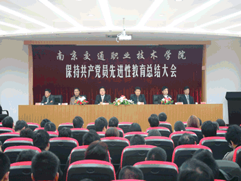 会上,省委第十八督导组组长花亚纯同志在讲话中,对我院先进性教育活动取得的经验和成效给予了充分的肯定,对我院进一步巩固先进性教育成果的各项工作提出了具体要求。他说,南京交院领导班子高度重视先进性教育活动,学院严格按照中央、省委的部署和要求,紧密联系实际,提前筹划、周密安排、精心组织、狠抓落实,保证了教育活动扎实有序地开展,达到了中央、省委提出的目标要求,取得了显著成效。花亚纯同志希望我院要继续做到保持党员先进性的劲头不放松,落实整改措施的力度不减弱,并继续在建立保持共产党员先进性长效机制上下功夫。