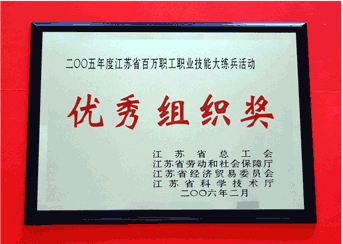 近日,按照苏政办发[2001]55号《关于在全省职工中实施群众性经济技术创新工程的意见》和苏竞组[2000]4号《关于在全省开展重点工程建设劳动竞赛活动》的文件精神,我院荣获省总工会授予的“江苏省百万职工职业技能大练兵活动优秀组织奖”,也是获此殊荣的唯一一所高校。