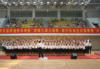 孟院长首先为比赛致开幕词。本次合唱比赛以系为单位,各代表队分别演唱了《八荣八耻歌》、《团结互助歌》、《崇尚科学歌》等爱国主义歌曲。选手们朝气蓬勃、激情满怀,嘹亮的歌声将比赛气氛不断推向高潮。最终,公路工程系凭借优异的表现荣获一等奖;建筑工程系、管理工程系荣获二等奖;其余各系获得三等奖。院领导分别为获奖集体颁了奖。