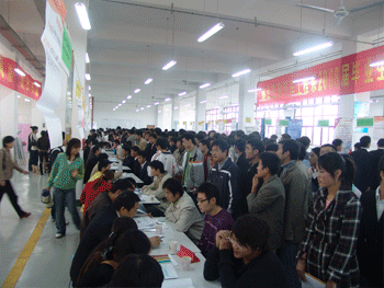 时下正值2008届毕业生的求职旺季,11月14日下午,汽车工程系继6月份预就业供需见面会和10月份丰田招聘会后,为2008届毕业生举办了第三次供需洽谈会。来自周边省市的33家业内单位到场参加了招聘,共为本系08届毕业生提供了350多个岗位,供需比近1:1.9。经过供需双方的密切互动与交流,各用人单位对我院学生的综合素质表示满意,共有100多名同学被当场录用,另有约200名同学被各单位录用为实习生。