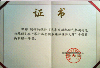 第七届全国多媒体课件大赛获奖结果于日前揭晓。我院选送的课件《汽车发动机配气机构构造与维修》(郭彬 制作)荣获髙职组一等奖;《平面设计元素在网页中的应用》(王海方、李岩、衡志等制作)荣获高职组三等奖。我院同时荣获本届大赛的优秀组织奖。