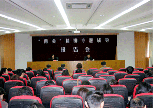 4月2日下午,学院邀请全国十届、十一届人大代表、南京工业大学教授、博士生导师、能源学院院长张红同志辅导学习全国“两会”精神。院党委书记孟祥林主持报告会。院长贾俐俐等全体院领导出席。全体中层干部、中级及以上职称教师、机关人员到会参加。