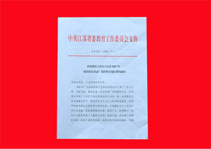 根据苏委教组〔2008〕16号文件精神,学院建筑工程系党总支报送的“走进苏北,关注农民居住条件;深入农村,关心农民生活环境”主题党日活动荣获省委教育工委2007年“最佳党日活动”优胜奖。