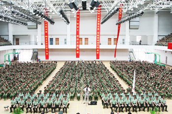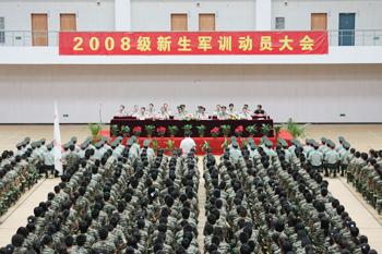 9月14日上午开学典礼结束后,学院2008级新生军训动员大会在大学生活动中心隆重召开。院党委副书记许正林,承训部队参谋长陈建军、副参谋长叶崇君等部队领导出席会议。学院相关部门负责同志,各系党总支书记、副书记参加会议。学院2008级新生军训团政委、保卫处处长祁国新主持会议。