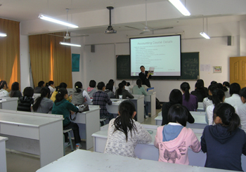 座谈会结束后,陈浩琛博士为学院会计与审计专业合作办学项目组成员和2008级会计与审计专业学生开设了讲座。陈博士介绍了澳大利亚堪培门理工学院的办学历史、专业设置、留学深造以及专业教学要求等方面的情况。下午,陈浩琛博士一行在有关部门负责人陪同下,还参观了学院校园和会计实训室。