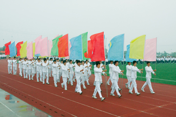 本届运动会以“我参与、我健身、我快乐”为主题,并通过增设“阳光伙伴”等娱乐项目,在提高全体师生参与热情的同时,积极倡导“热爱体育、崇尚运动、健康第一”的健身理念。开幕式简短而热烈,融入了大合唱《阳光体育之歌》、简化太极拳表演、大众操表演等精彩节目。