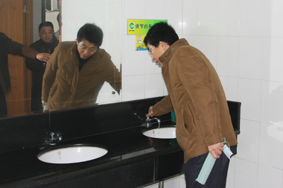 汇报会结束后,专家组成员认真查阅了学院创建“节水型”高校工作台帐,重点现场查看了教学楼、食堂、宿舍、开水房等处的供水管线、节水器具的安装使用、用水系统的管理、计量水表的安装等,并随机对学生进行了问卷调查。在此基础上,考评专家组认真进行了情况汇总和评议打分。