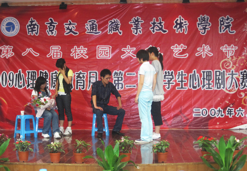 6月4日晚,学院第二届大学生心理剧大赛在明德楼报告厅举办,学院党委副书记许正林,副院长王晓农,第八届校园文化艺术节组委会部分成员出席并担任评委。本次活动由学生工作处、思政教研部联合承办。本次大赛是学院第八届校园文化艺术节和2009年心理健康教育月系列活动之一。