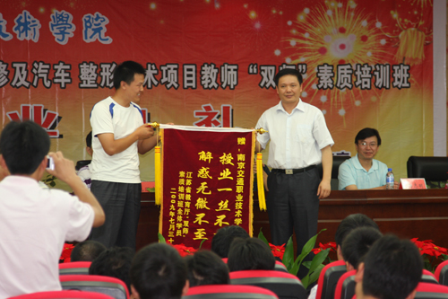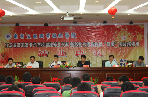 本期培训班共有学员50人,来自全省33所高职院校。培训工作共分四个方面。一是理论学习。在完成指定课本学习的基础上,开设了8场讲座。其中,学院院长贾俐俐教授的《高等职业院校师资队伍建设》、高进军副院长的《汽车专业群的建设措施和项目化教学改革方案》报告结合我院优秀教学团队建设和品牌专业建设情况阐述了“双师”素质教师队伍建设的重要意义和措施、途径;南京林业大学交通工程学院院长、博士生导师闵永军教授的《现代汽车诊断与维修技术》、南京农业大学博士生导师鲁植雄教授的《汽车总线技术》等专题讲座介绍了汽车维修新技术、新结构、新工艺、新方法;全国汽车维修专家李东江教授的《汽车故障诊断的思维方式》,全国职业技能大赛主裁判杨忠颇的《电控发动机故障诊断与排除》和魏世康的《汽车ABS系统检测与维修》,汽车维修专家石明雄的《自动变速器故障诊断与检修》等学术报告介绍了汽车电子控制系统的故障诊断思路和维修方法。二是项目训练。在国家级实验基地——学院汽车运用与维修实训基地,学院指导教师组织学员相继开展了“丰田汽车40000公里维护”、“汽车总成大修”、“电控发动机故障诊断”、“自动变速器维修”、“ABS系统的故障诊断与检测” 、“汽车钣金修复”、“汽车涂装修复”、“车身的测量与校正”、“板件修复与焊接”、“车身涂装”等10个项目的训练。三是组织召开研讨会。研讨会结合学院省级品牌专业、优秀教学团队建设和项目化教学改革的实践,对汽车检测维修专业实行以工作过程为导向的项目化教学改革开展了讨论;各校学员还就学生的职业能力培养、教改环境营造、教师职业能力培养、实训基地建设等问题进行了交流。四是组织参观学习。组织学员深入南京天奥汽车销售服务有限汽车等企业参观学习,听取了企业领导对汽车维修企业的岗位设置、工作任务和能力要求的讲解,了解了汽车维修行业从业人员的技术素质状况和人力需求。