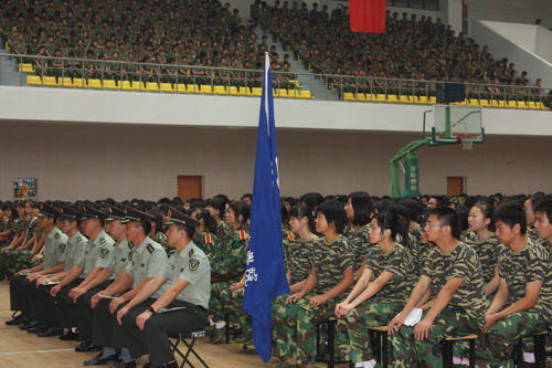 院党委副书记、2009级大学生军训工作领导小组组长许正林向新生们作了军训动员讲话。在对新生表示欢迎的同时,他对新生提出了四点希望:一要提高对军训重要性和必要性的认识,以积极、认真的态度投入到军训中去;二要增强组织纪律观念,严格遵守作息时间和军训各项规定,以军人的标准严格要求自己,服从命令、听从指挥、尊重教官;三要发扬吃苦耐劳精神,顽强拼搏,团结互助,形成争优创先的良好军训氛围;四要以实际行动学习解放军的优良传统和优良作风,并把军训成果贯穿到今后的学习和整个大学生活乃至整个人生历程中去。
