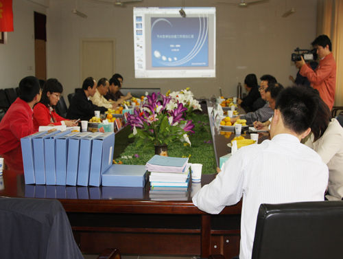 许正林副书记首先向专家组一行简要介绍了学院情况,汇报了创建工作的整体概况。后勤管理处副处长俞高钧就学院节水工作情况从领导重视、制度建设、节水宣传、节水设施、定量指标、创建与交流等六个方面作了专题汇报。