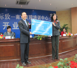 随后,出席典礼仪式的一行领导前往设在学院汽车工程系实训中心的“东风标致-南京交通职业技术学院培训中心”出席揭牌仪式。学院党委书记孟祥林和东风标致服务和备件部部长郭和平共同为培训中心揭牌。按照协议,东风标致为培训中心提供了8辆汽车、5台发动机、4台变速器、2套专用工具、2套专用检测仪等价值160余万元的教学设备。