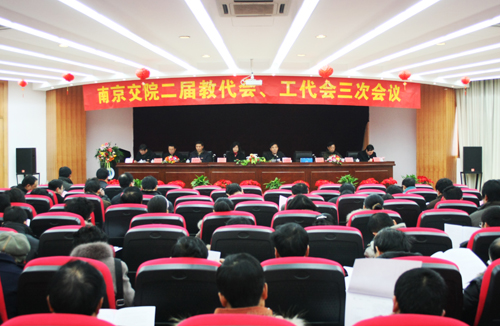 会议听取并审议通过了院长贾俐俐作的行政工作报告、财务处处长张家俊作的《学院2009年财务决算和2010年财务预算(草案)的报告》。会议还听取了人事处副处长姜军代表学院岗位设置管理工作领导小组作的《关于学院岗位设置方案的说明》、工会主席何卫平作的《学院工会工作报告》和院办副主任谢建康代表学院二届教代会提案工作委员会作的《二届二次教代会提案落实情况报告》。