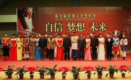 4月26日晚,学院第九届校园文化艺术节开幕式暨高雅艺术进校园南京航空航天大学歌舞团专场演出在大学生活动中心隆重举行。院党委书记孟祥林,副书记许正林,副院长高进军、王晓农,副院级调研员陈玉龙等院领导出席开幕式。艺术节组委会的委员、各相关部门负责同志和千余名同学观看了演出。