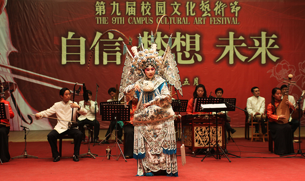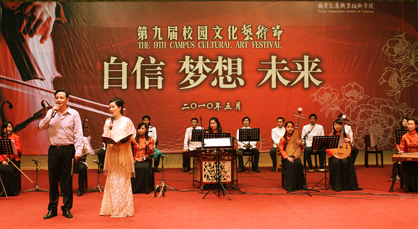 演出由国家一级演员、影视剧三栖明星侯长荣先生,国家一级演员诸葛秀兰主持并讲析,共演绎了八个富有特色的节目。民乐合奏《扬州好》、《扬剧曲牌曲目协奏》,扬剧花鼓调联唱《俏人儿》、《十杯酒》、《采莲调》,经典扬剧《百岁挂帅•寿堂》等相继登台,联袂上演了一场扬剧盛宴。由艺术家带领同学互动模仿的扬剧秀,给现场平添了几分喜剧效果。演出给观众带来精美艺术鉴赏的同时,也为本次校园文化艺术节传统文化系列节目画上了浓墨重彩的一笔。