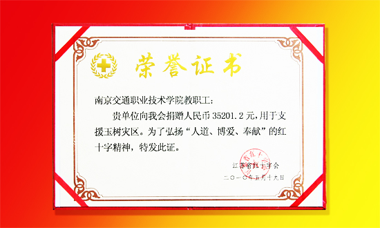 玉树地震发生后,学院师生积极响应院党委号召,踊跃为玉树抗震救灾捐款捐物。学院已于日前将师生所捐款项35201.2元交至江苏省红十字协会。截至目前,援助活动仍在进行中。