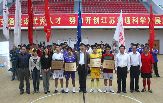 历时2个月的学院第九届学生足球联赛在经过7轮21场精彩比赛后于日前顺利结束。电子信息工程系足球队荣膺本次足球联赛的冠军,机电工程系足球队获得亚军,汽车工程系足球队获得季军,人文艺术系足球队荣获“体育道德风尚奖”。路桥工程系刘旭,人文艺术系郭佳俊,电子信息工程系朱金龙,机电工程系包健、吴静涛等足球队员分别获“最佳射手”、“ 最佳运动员”和“最佳裁判”荣誉称号。学院副院长王晓农等出席颁奖仪式并为获奖集体和个人颁了奖。