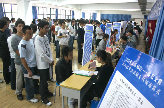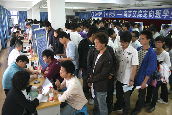 6月9日,2010年东风标致--南京交院第二期定向班学生选拔会在行健馆举办。选拔会吸引了华东地区15家东风标致品牌特约经销商,共计99个就业岗位热招汽车工程系2011届毕业生。学院副院长高进军亲临现场向用人单位表示了欢迎和感谢,并与东风标致汽车公司技术分部主任李新伟等作了会谈。