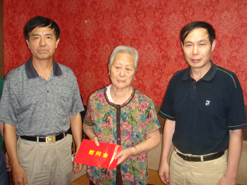 今年是中国人民抗日战争胜利65周年,根据上级有关组织慰问抗日老干部的文件精神,体现组织上对抗日老干部的关心和爱护,9月2日下午,学院党委书记孟祥林、院纪委书记应海宁来到我院已故的离休老干部许怡善(离受副厅级部分生活待遇)家中,慰问其遗孀及子女。孟书记转达了上级对老干部的关心和慰问之意,代表学院党委、行政对许老夫妇在抗战年代对国家所作的贡献表示崇高的敬意,对许老为学校建设和发展所做的贡献表示感谢。同时,询问了她的健康状况和生活情况,并送上了慰问金,祝福她身体健康,安享晚年。