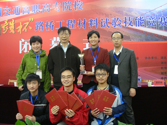 11月21日, 2010年全国交通高职高专院校“刚毅杯”路桥工程材料试验技能竞赛在湖北圆满落下帷幕。经过两天的激烈比拼,学院路桥工程系参赛选手李智、胡斌、龙凯三名同学取得了3个个人全能一等奖、1个单项一等奖、3个单项二等奖、2个单项三等奖的优异成绩,学院最终夺得团体一等奖,