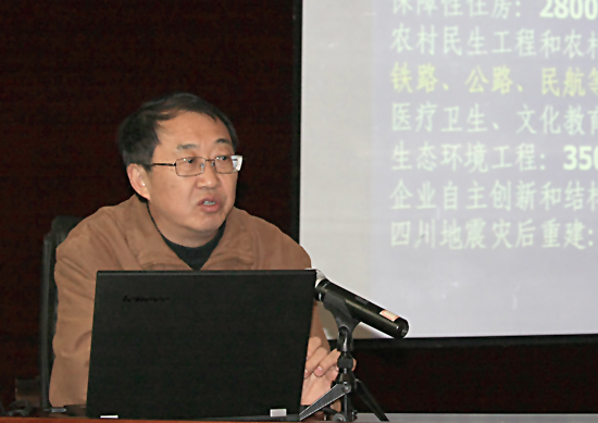 徐副厅长从江苏城市化程度和拉动经济发展措施切入主题,对我省建筑业的现状、建筑业在全国的地位、建筑市场未来发展趋势、2010年经济形势分析以及未来10年的展望等作了深入分析,并结合他亲自参与的奥体中心、新庄立交、玄武湖隧道等工程项目,对八个建筑类专业方向提出了他的思考和解析。报告中,徐副厅长还结合苏南、苏中、苏北近几年的发展以及“十二五”规划,向大家展示了江苏的交通发展格局。结合江苏建筑业发展形势,徐副厅长对学院的人才培养工作提出了具有建设性的意见,对在场的同学提出了殷切的希望和要求。
